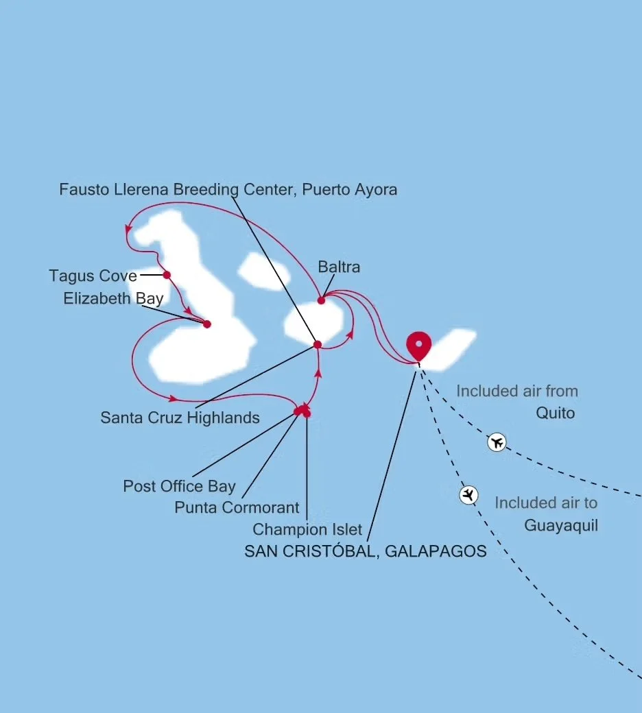 Seamless access to San Cristóbal via in-country or group flights, as outlined in your booking confirmation.